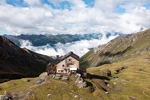Unsere höchstgelegene Hütte! Sie thront im Reich der Dreitausender des Nationalparks Hohe Tauern in atemberaubender Aussichtslage auf der Oberen Steiner Alm. Zentraler Stützpunkt in der südlichen Granatspitzgruppe, flankiert von der österreichischen Bergprominenz: im Westen die Venediger-, im Osten die Glocknergruppe.