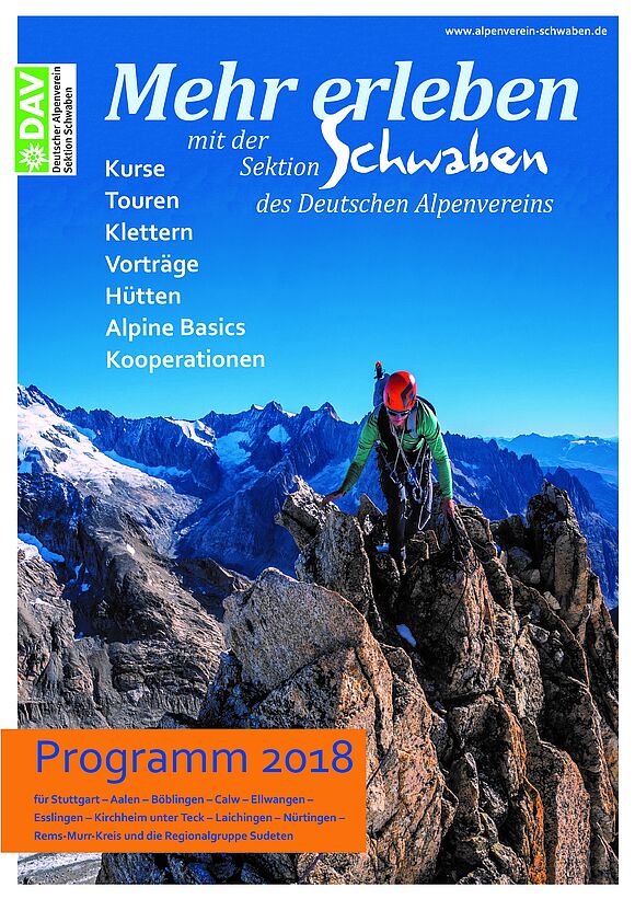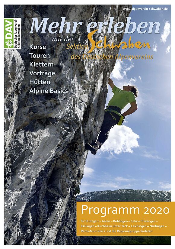 ist die Angebotsübersicht der Sektion Schwaben. Jedes A-, C-, Junior- und Jugendmitglied erhält die Mehr Erleben einmalig kostenlos, je nach Wunsch, per Post oder Mail zugesandt.